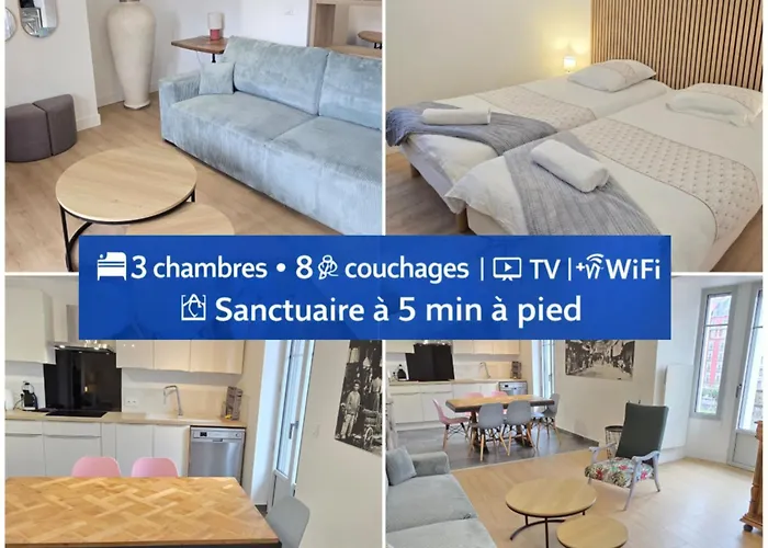 - ❓Czy pokoje w apartamencie Le Charme Du Sanctuaire 8 Couchages 400M De La Grotte mają ładny widok?Goście zatrzymujący się w apartamencie Le Charme Du Sanctuaire 8 Couchages 400M De La Grotte mogą podziwiać malowniczy widok na miasto.